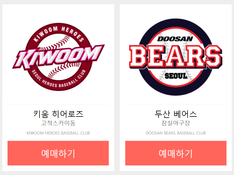두산베어스, 키움히러로즈: 인터파크 예매하기